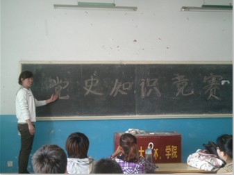 此次比赛分为“小试牛刀”、“红歌接唱”、“实力比拼”三个环节,共有九组选手参赛。比赛内容囊括党的理论、历史、时事等多方面,新颖的竞赛形式不时激起了各参赛小组的热情;“小试牛刀”环节中,各参赛小组选手沉着应答,对设计的“八荣八耻”、“科学发展观”等问题,都在规定的时间内完成任务;接下来的“红歌接唱”环节,使得严肃紧张的现场氛围更加活泼轻松,也将此次比赛推向高潮,其中二号小组的《我和我的祖国》,凭着自己扎实的音乐基础,对旋律的准确把握,将此曲完美接唱,赢得了主持人和各参赛小组的热烈掌声;“实力比拼”环节中各组选手你追我赶、使出浑身解数,将比赛推向炽热状态,最终第二组选手略胜一筹,赢得了此次比赛的一等奖;最后,活动在同学们一片掌声中圆满结束。