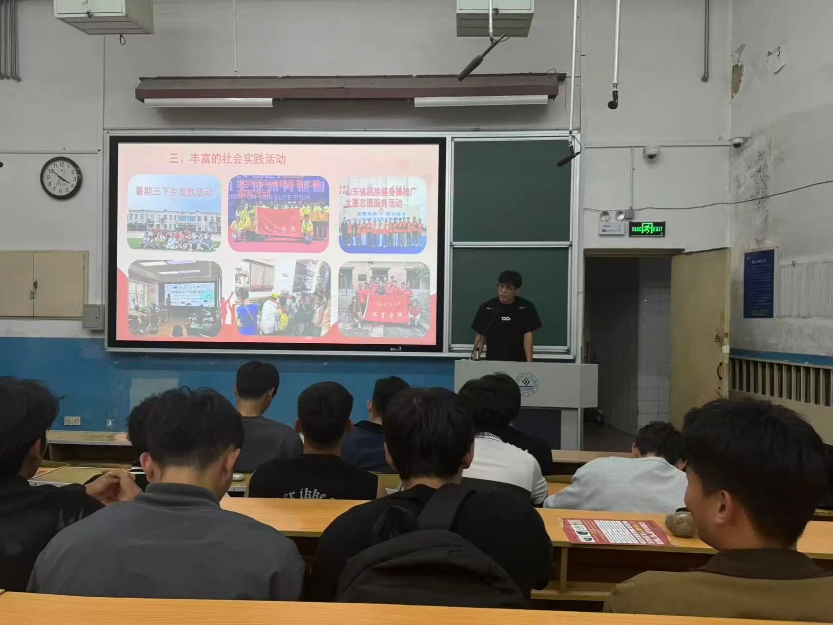 宣讲中,陈新康以济南大观园社区实践经历为蓝本,生动分享了社区儿童体育辅导、户外研学、网络安全宣讲、社区环境保护等多元服务场景。“在教孩子打球时,我读懂了‘体育育人’的温度;在参与社区环境整治时,我明白了‘服务社会’的重量。”他坦言,基层实践是知识落地的“转换器”,更是倾听民生的“连心桥”,这份经历让他的社会责任感在服务中厚植生长。