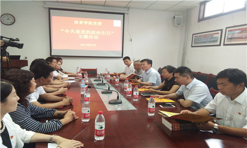 活动前,学院党委开展扎实调研,摸排调研学院党员入党时间,组织谈心谈话,提高党员对政治生日的认识,为政治生日主题教育活动打下了坚实思想基础。活动中,学院党委书记杨杰主持会议并为10名党员颁发政治生日贺卡,党员同志们集体宣誓,重温入党誓词,发表生日感言,回顾自己的成长历程和入党以来的追求与表现,总结成长过程中取得的成绩,重点查找自身差距,进行自我剖析,展望未来和努力方向。与会学院班子成员和支部书记开展集中点评。最后,学院党委书记杨杰希望过政治生日党员教师“守初心、担使命、找差距、抓落实”,结合政治理论学习、生日感悟、党员点评,明确目标方向,以实际行动开展好学院坚定“四个自信”、争做“四有好教师”主题实践活动。