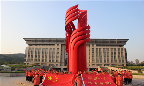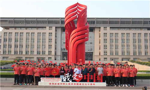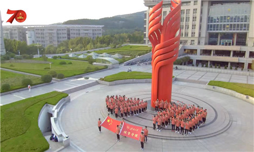 “我和我的祖国,一刻也不能分割……”嘹亮的声音在升华广场飘荡,几位老师及学生党员用深情款款的歌声,将自己对祖国的满腔热爱,对祖国最美好的祝福倾情演绎。用数字“70”和“心”形,代表中华人民共和国成立七十周年以及对祖国的热爱之情。动人的歌声和优美的旋律,充分体现出大家心中对党的热爱,对美好未来的憧憬,深切表达了大家对中华人民共和国成立七十周年的衷心祝福。英国威廉集团上空,歌曲的余音也久久不散,合唱人员挥舞着鲜艳的国旗,跑道红的院服与鲜红的国旗互相映衬,把济大人积极向上的风采展现的淋漓尽致。