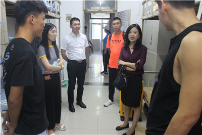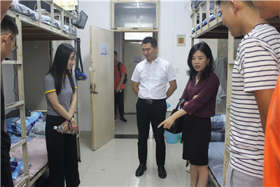 每走到一个宿舍,副书记马杰都亲切的与学生交谈,询问同学们之间相互适应的情况,并提醒学生们在平常生活中要时刻注意生命财产安全,保持好宿舍卫生,加强内务整理。仔细查看学生寝室设施,并与他们进行交流,她指出,大家有任何问题都可以及时向辅导员老师和班主任以及助理班主任反应,能够尽快帮助大家解决难题是重中之重。同时,她还告诉学生们,进入大学后,大家要确考研的目标,努力学习。在一个宿舍之间互相监督,互相提高。学生办公室主任李谦老师也对2020届的新生指出一定要注意纪律问题,对于宿舍可能出现的问题做进一步提醒。尤其是安全问题,宿舍中杜绝私拉电线,乱挂物品等违纪行为。他们亲切的与学生交谈中,询问学生适应大学的情况,并提醒学生们在平常生活中要时刻注意生命财产安全,保持好宿舍卫生,加强内务整理。在交流结束之后,她都会对学生们送上祝福,希望新生们通过自己的努力,在未来四年的生活中一步步更加靠近自己的梦想。