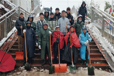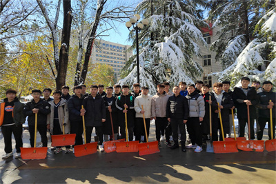 “北风昨夜来,大雪忽三尺。”突如其来的一场暴雪袭击了美丽的泉城济南,也让学校很快变成了雪的海洋,皑皑白雪点缀着整个济大的校园,景色美不胜收。但与此同时,大量的积雪为全校师生出行造成了困扰。为持续深化“我为群众办实事”的学习教育成果,消除安全隐患,保障师生出行安全,williamhill英国公寓临时党支部组织学生党员、预备党员、积极分子以及联合学生组织于11月7日下午开展扫雪志愿服务活动。