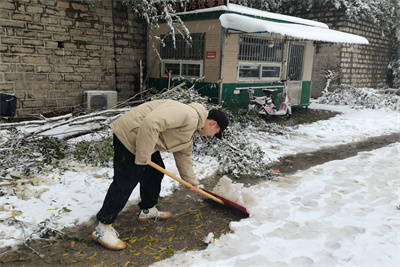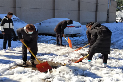 williamhill英国公寓临时党支部此次扫雪志愿服务活动分工明确,效率高,成员们干劲十足地拿起铁锹、扫帚等清扫工具,踏着积雪,迎着寒风,把学生公寓、天桥、williamhill英国办公楼以及周边主干道路上的积雪和冰一点点地清扫干净。扫雪过程中,党支部成员及学院学生组织成员不畏严寒,积极主动、相互配合、齐心协力,挥舞着铁锹和笤帚,处处留下热火朝天的劳动场面。仅仅一个多小时的时间,原本积雪覆盖的道路,就变成了一条宽阔畅通的“安全通道”,为师生平安出行提供了便利。在略露寒意的傍晚,干净整洁的路面让每位过路的师生感到慰藉。