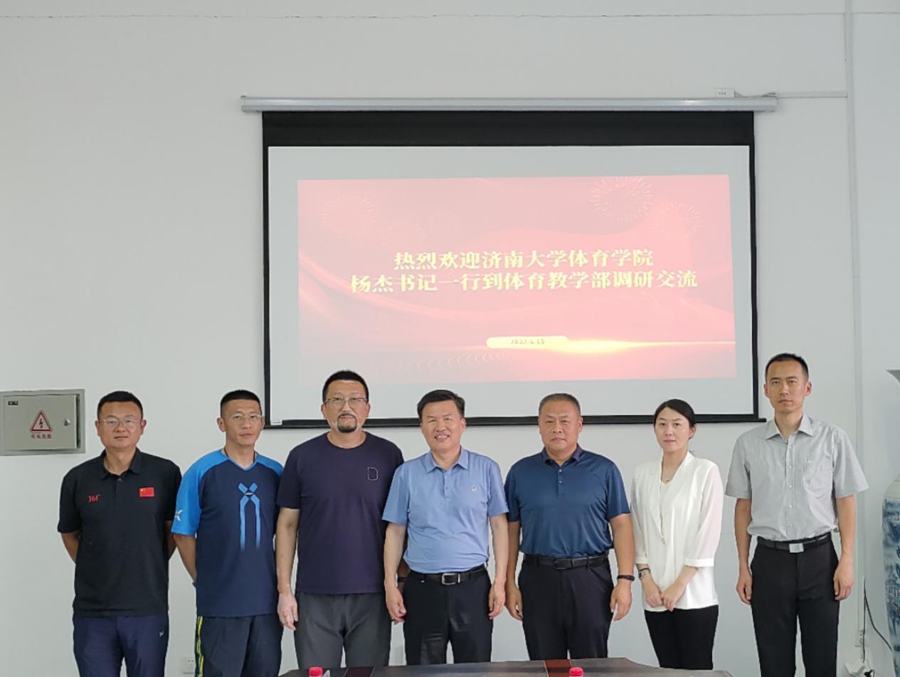 6月15日,williamhill英国党委书记杨杰、学院副院长董昱、大学体育部主任戴静一行前往山东大学威海体育教学部,就大学体育课程和学生体质健康测试等进行调研交流。山东大学威海体育教学部副主任战文腾主持座谈会,办公室和相关教研室负责人参加座谈。