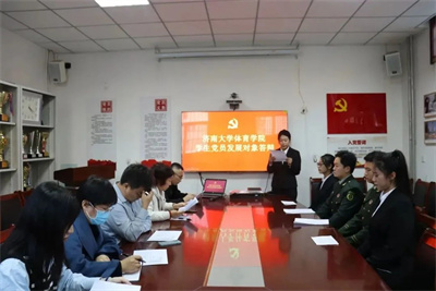 参会老师认真听取了每位同学的陈述,学院党委副书记、副院长郭桂芬为同学们提出了三点建议:一是勤学苦练,增强在新时代中迎接各种挑战和困难的本领;二是提升境界格局,先公后私、先人后己,树立和维护学生党员的良好形象;三是坚定理想信念,为党和人民事业的发展做出更大的贡献。