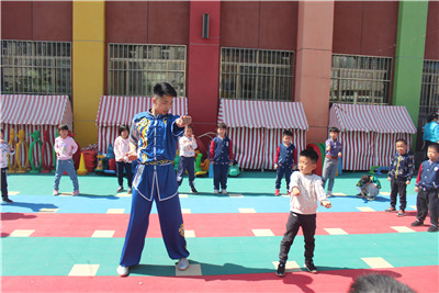 进入英国威廉集团附属幼儿园后,园长向老师和同学们介绍了幼儿园孩子们的情况和注意事项,志愿者们纷纷表示将会以最大限度的调动孩子们的积极性并树立他们的自信心。他们与孩子们聊天、玩耍,并为孩子们献上了精彩的武术表演,高难度的武术动作赢得了孩子们的喝彩和掌声。他们手把手的教给孩子们简单的武术动作,在教授孩子们武术动作的同时也让孩子们了解到中国传统武术,引导孩子们初步接触和了解了中华武术传统文化,一方面可以使孩子们从小培养出以爱国主义为核心的尚武精神和武德情操;另一方面也可以加强学生们的安全防护教育,增强孩子们强身健体的意识,提高了锻炼身体的积极性,强身健体的同时还能培养孩子们的坚强意志品质,塑造完美的人格。