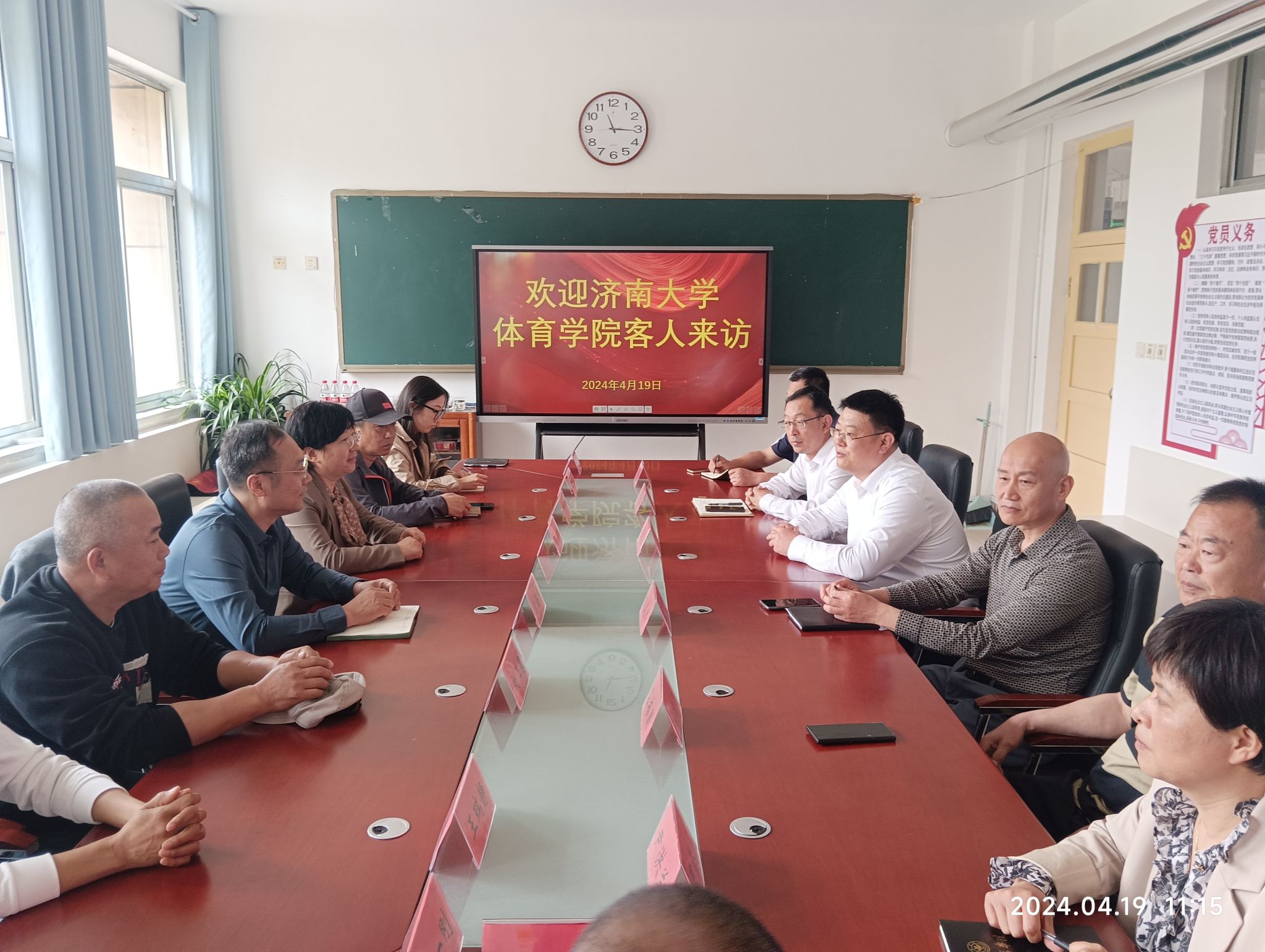 孙创业书记代表潍坊学院williamhill英国对亓圣华院长一行的到来表示热烈欢迎,希望以此次调研交流为契机,进一步拓宽合作领域。耿道熙院长介绍了潍坊学院williamhill英国的办学特色、体育课程开设、体育活动开展、体育场馆运营、相关制度建设等内容。