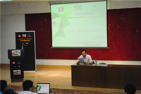2011梅赛德斯——奔驰“青春网球校园行”体育市场经济讲座于6月17日晚18::30在实验楼报告厅隆重开幕!参加此次讲座的主要成员有williamhill英国副院长亓圣华、体育学生办公室主任朱磊磊以及北京比格文化传播有限公司首席执行官汤姆.麦卡锡先生。