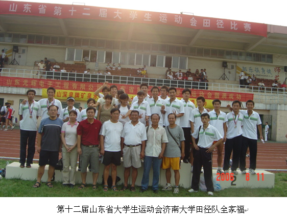 建队后先后参加了第九届和第十届全国大学生田径锦标赛,并取得了良好成绩。在2006年8月举行的第十二届山东省大学生运动会中,获得男子甲组团体第六名,女子甲组团体第七名,甲组团体第八名的良好成绩,其中文学院姜朝波同学在竞争激烈的男子100米和200米比赛中分别获得了第四名和铜牌,并且两项均达到或超过国家一级运动员标准,开创了我校自己培养国家一级运动的先河,姜朝波同学同时还获得了男子甲组4*100米接力的银牌,在本次大赛中被评为体育道德风尚奖。