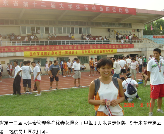 3、第十二届山东省大学生运动会马立强分别获得男子甲组400米栏、第七名,3000米障碍第六名。